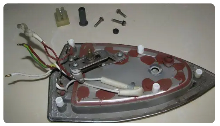 将熨斗倒置,卸下底部的螺丝和垫圈。